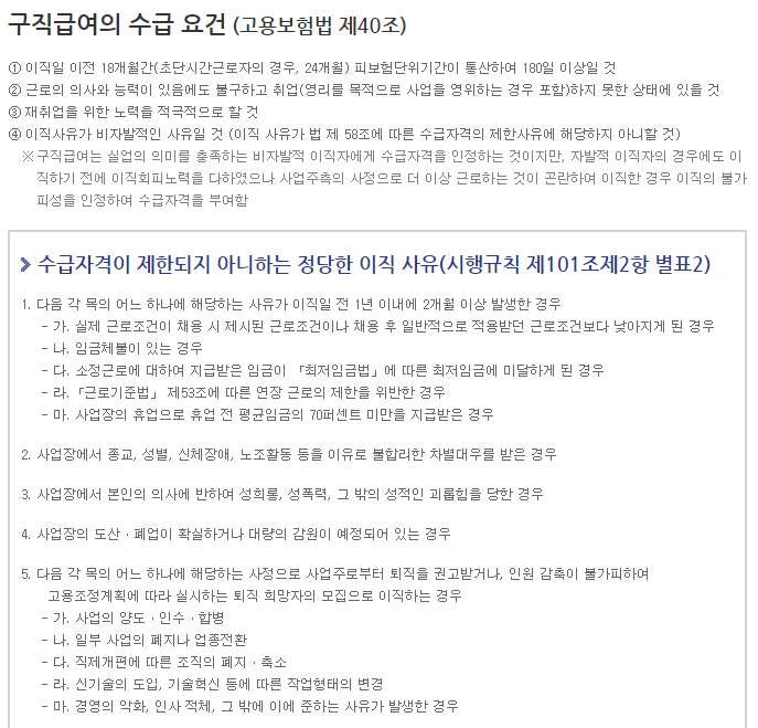 구직급여는 본인의 의사가 아닌 이유로 실직이 되었을 때 해당되는 사항이지만