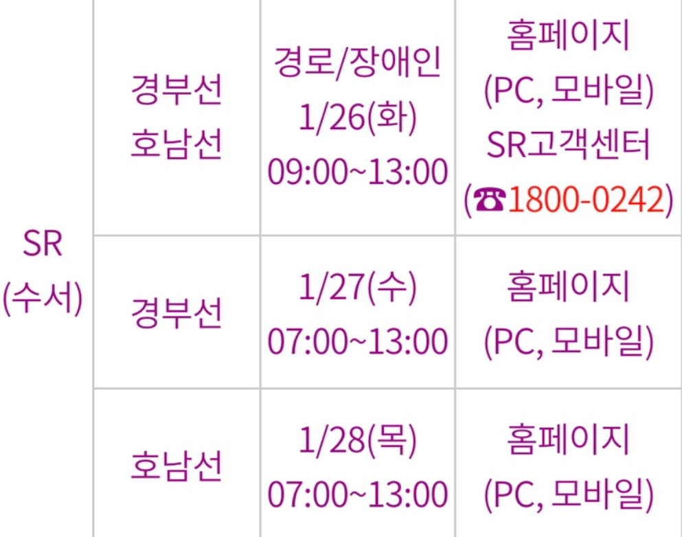 (아래에서 KTX와 SRT의 다른 예매 날짜를 알려드립니다.)