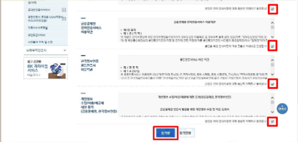 4. 각종 약관에 체크를 하고 동의함을 클릭합니다.