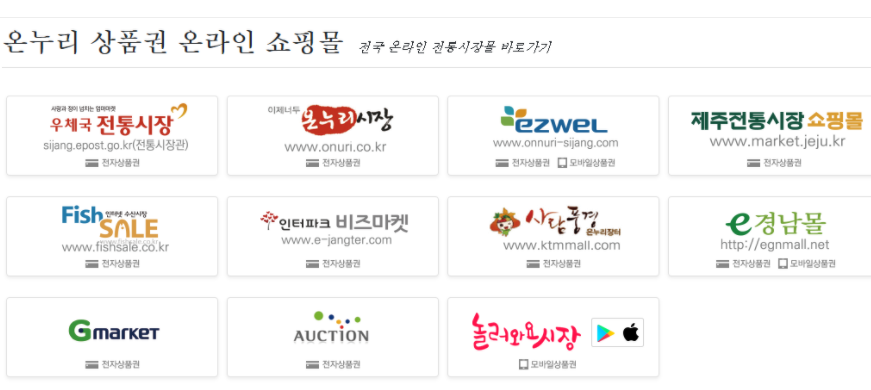 해당 페이지에 들어가면 온누리상품권을 사용할 수 있는 온라인 쇼핑몰도