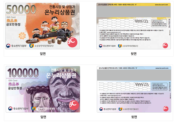 -전자상품권 종류는 5만 원권 , 10만 원권 2종류가 있습니다.