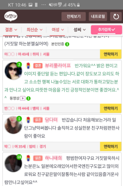 연락이 오는데 연락을 하면서 카톡 혹은 영상채팅을