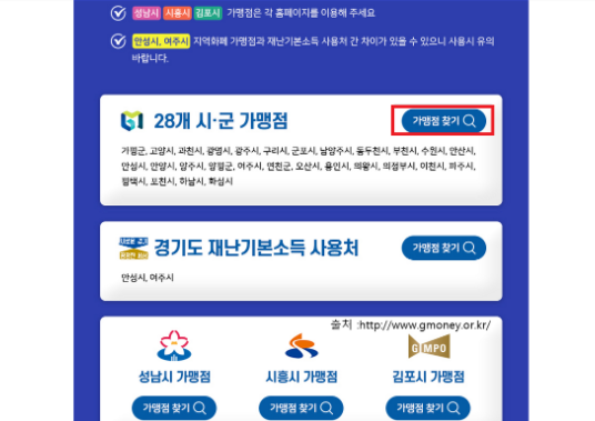 홈페이지에 접속해서 경기지역화폐 사용처를