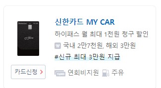 출퇴근 시 톨게이트를 자주 지나가지 않는 경우라면 해당 카드는 비추천 드립니다.
