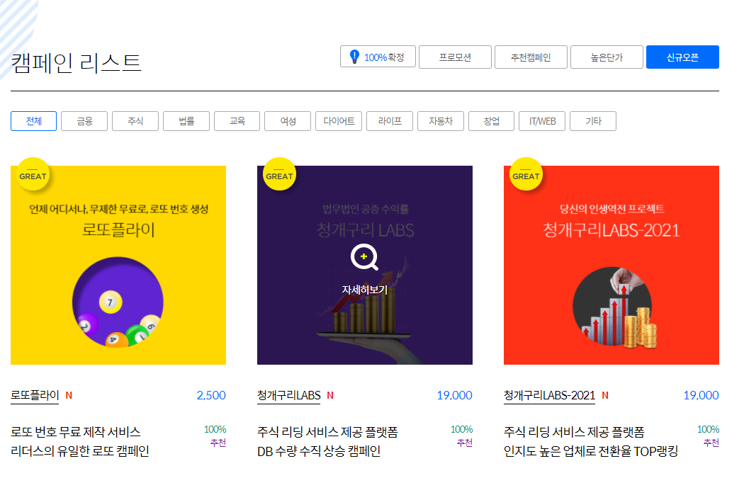 캠페인 리스트를 확인할 수 있습니다.
