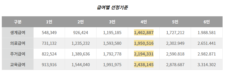 수급자 선정 기준 (1,2 모두 충족)은 다음과 같습니다.