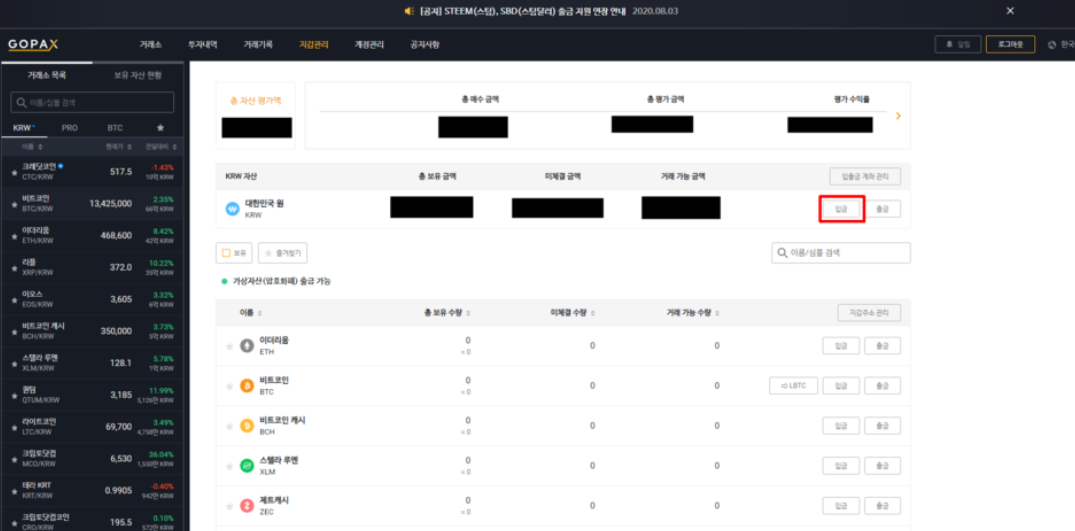 비트코인 입금 후 거래하기