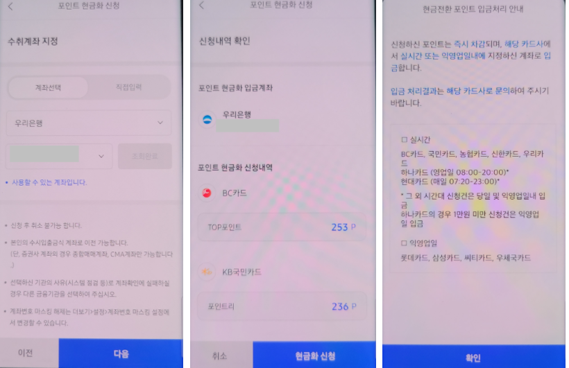 이 글을 보면서 바로 카드 포인트 현금 전환을 해서