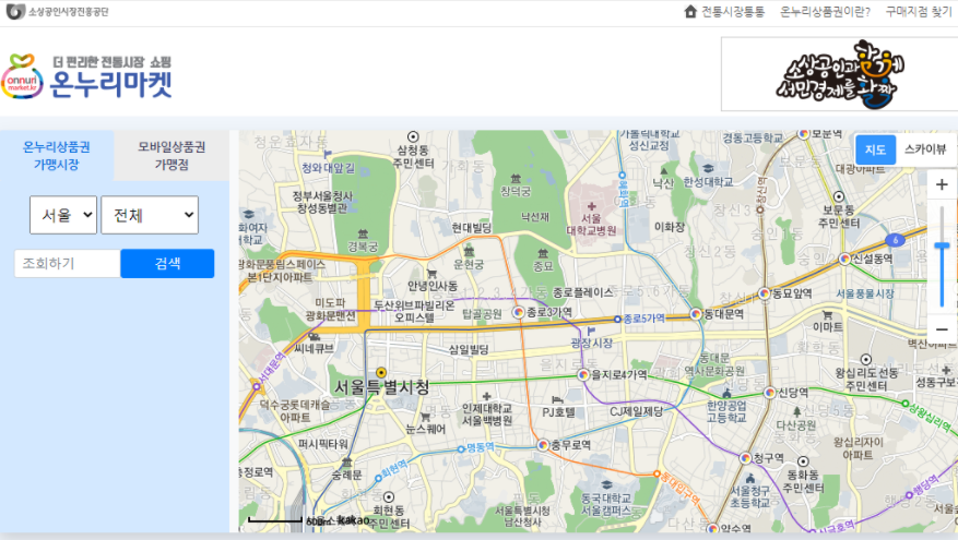 소상공인 시장 진흥공단 홈페이지 내 온누리 마켓