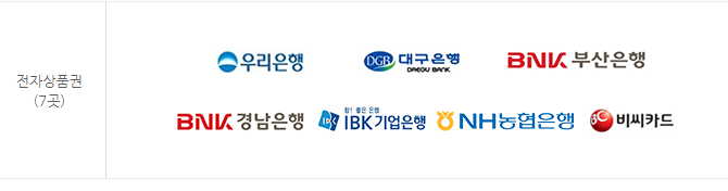 -전자상품권 종류는 5만 원권 , 10만 원권 2종류가 있습니다.