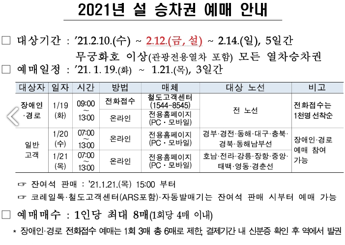 설날 기차표 예매는 1인당 구매 가능한 기차표가 최대 8 매라고 합니다.