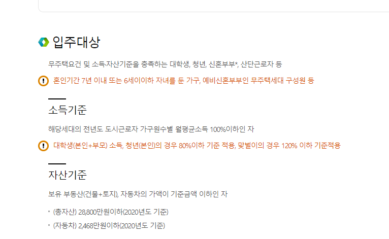 -청년 - 대학생 - (예비) 신혼부부 -한부모가족 - 고령자 -주거급여 수급자 -산단 근로자