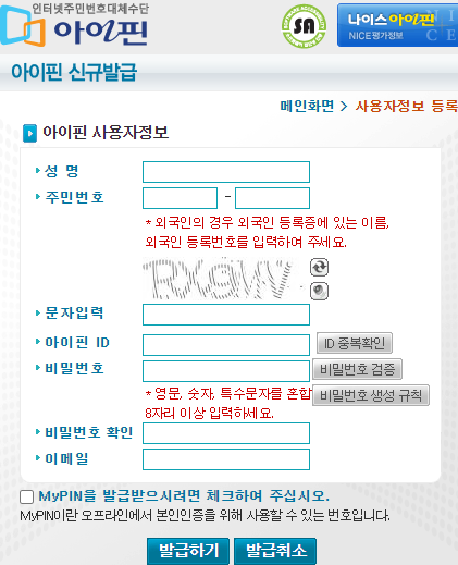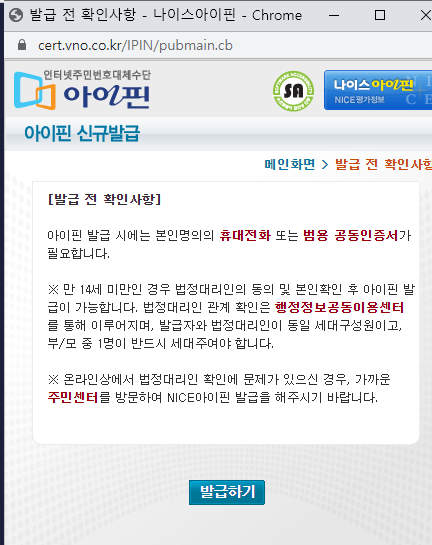 위의 9가지 순서를 진행한다면 아이핀의 대한 발급은