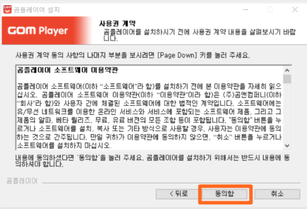 곰플레이어의 소프트웨어 이용약관을 읽어보신 후 내용에 동의하신다면