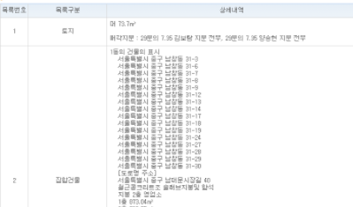 목록 내역은 부동산 등기기록과 매우 유사하고
