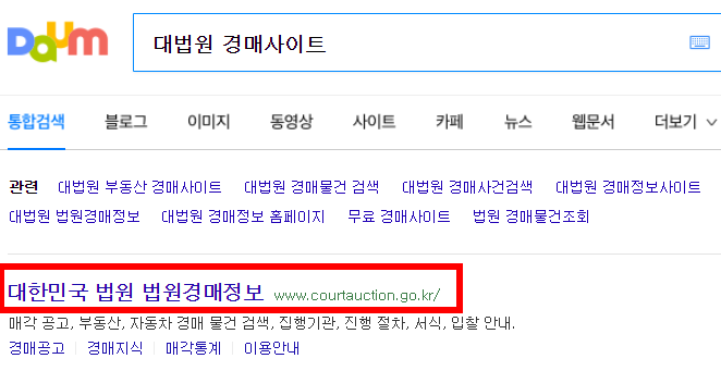 포털사이트에서 대법원 경매 사이트를 검색 후