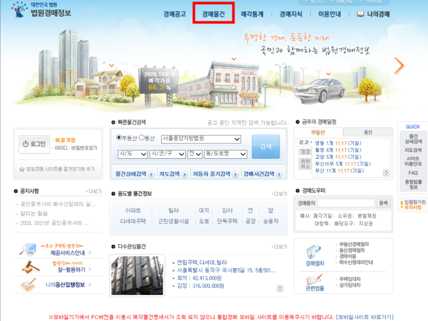 대법원 경매 사이트에서 경매물건 보기와 검색 방법은