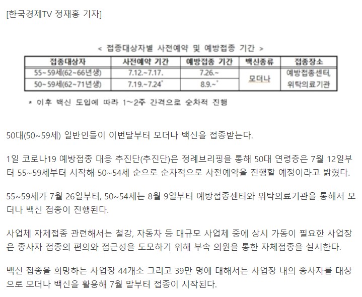 50대 일반인 7월부터 백신 접종 시작...